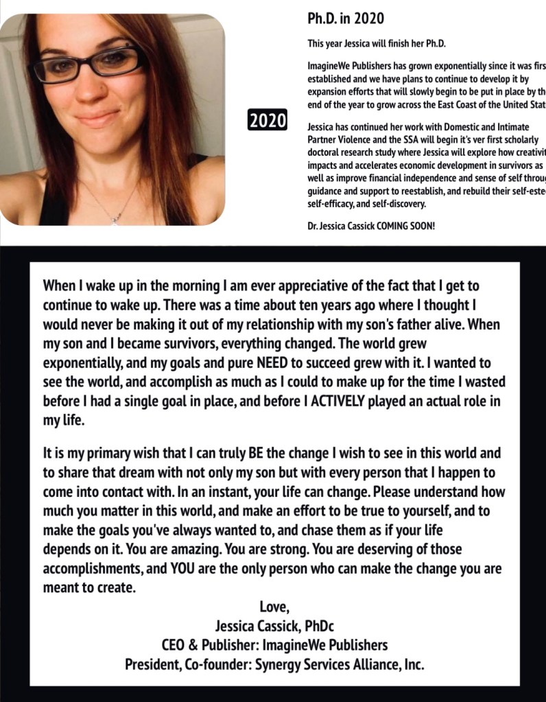 The CEO, Jessica Cassick, MS, herself reads each and every submission. We want to be the bridge that guides, appreciates, and supports you toward success. When it feels like the opportunities have closed their doors, ImagineWe, LLC will be there to welcome you. ImagineWe has upcoming open house events, workshops, and collaborations. Let’s work together!